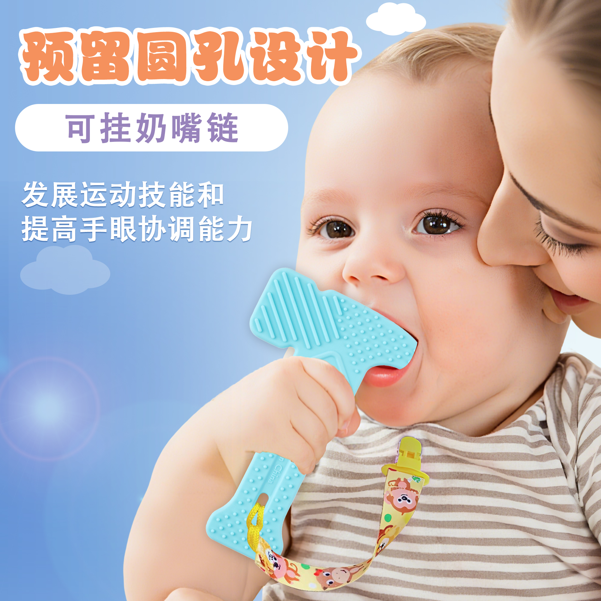 亞馬遜錘子扳手牙膠嬰兒硅膠磨牙棒寶寶卡通兒童防咬手牙膠5件套